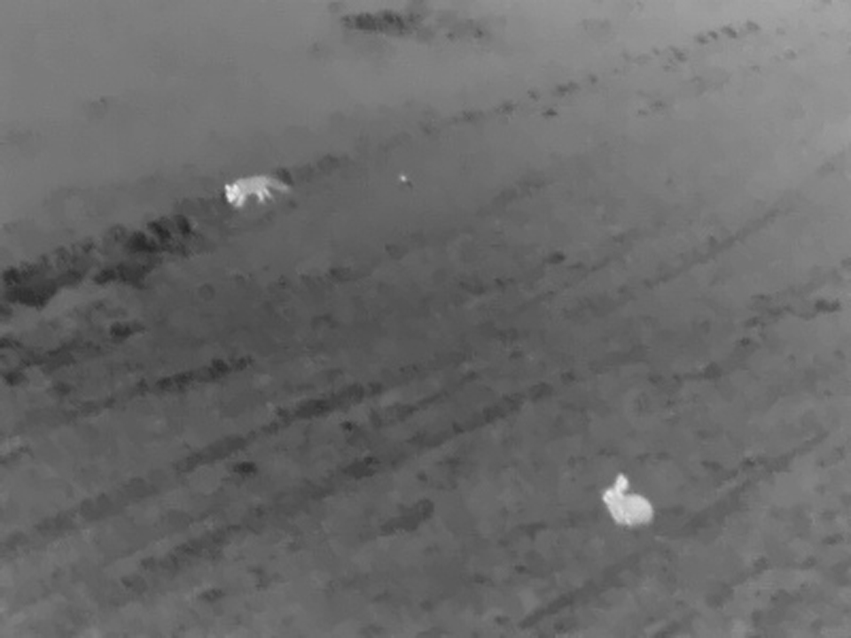 Sehr praxisgerecht für eine jagdlich eingesetzte WBK sind die völlig geräuschlosen Knöpfe beim Drücken. Das Gerät hat eine optische Grundvergrößerung von 3,3fach, digital lässt sich auf 4fach hochzoomen. Dieser Zoom funktioniert stufenlos – sehr angenehm. Hält man die Up-Taste gedrückt, zoomt das Gerät langsam hoch, beim Loslassen stoppt die Vergrößerung, mit der Down-Taste geht's umgekehrt. So kann man sehr schnell genau die Vergrößerung wählen, in der man noch Details erkennt, ohne dass es zu pixelig wird.